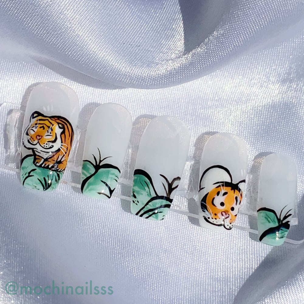 Want a nail set with cute tigers on it without being too flashy? This set is great for you!